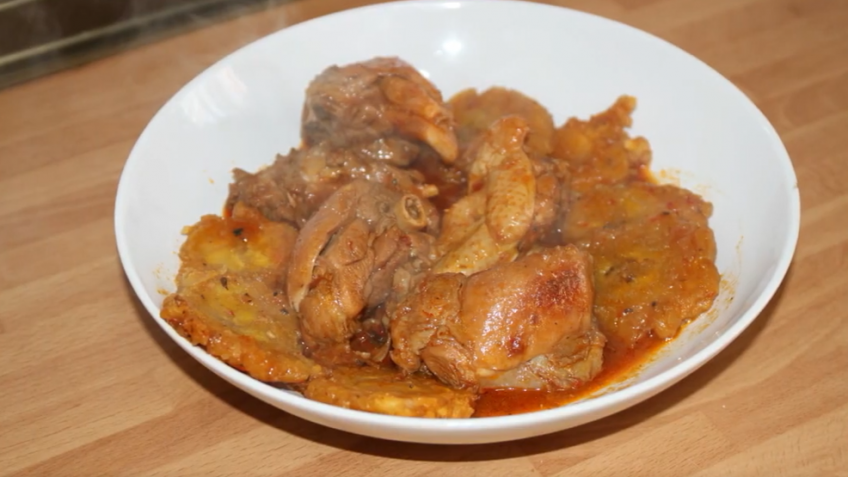Pollo con plátano guisado