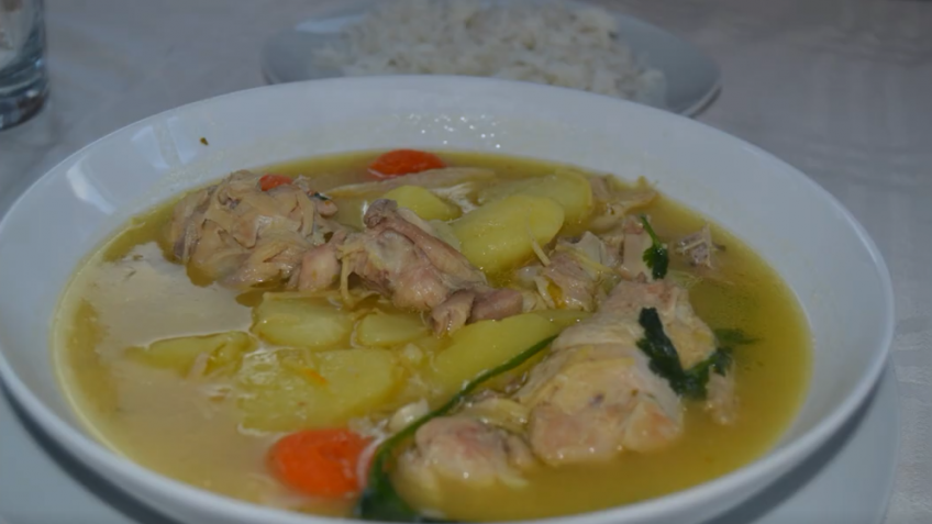 Sopa de pollo con fideos