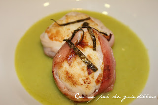Rape con jamón o nuestro mar y montaña del día, que, además, lleva un toque personal con unos recortes de alga nori, lo que le da color al plato y más expresión marinera. No sé que os parece a vosotros, Leer más…